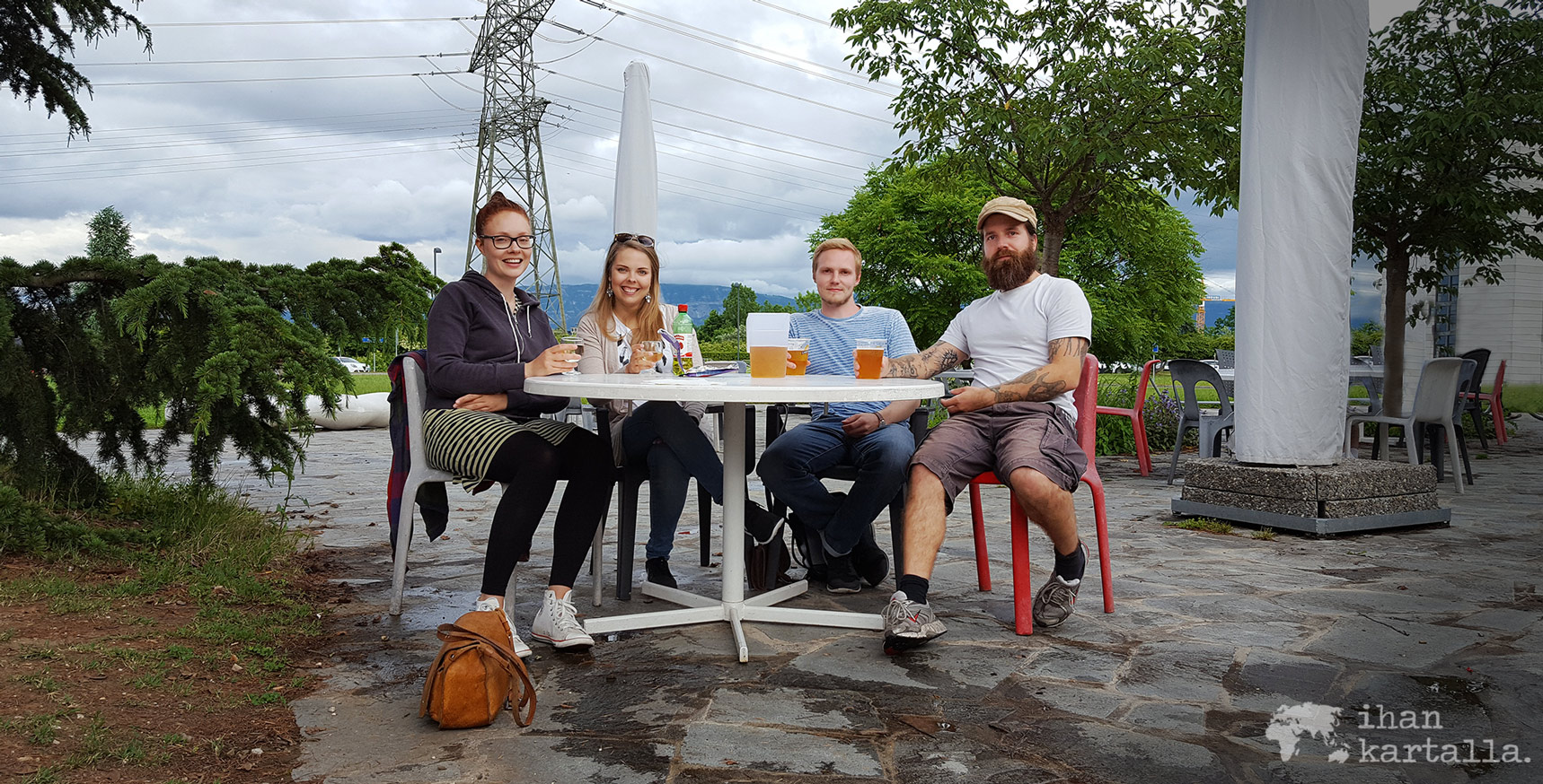 Palautettuamme vuokra-auton lentokentälle suuntaamme Euroopan hiukkasfysiikan tutkimuskeskukseen eli CERNiin, jossa tuttavamme työskentelee ja jonne muutoin ei pääsyä olisikaan. Illastamme paikan työpaikkaruokalassa, josta löytyy myös oma oluthana. Tuoppi irtooa neljällä eurolla, kun se keskustan ravintoloissa maksaisi kympin. Niinpä jäämme olutkannun kanssa terassille istuskelemaan, kuten näyttää tekevän myös yllättävän moni työpäivänsä päättänyt CERNiläinenkin.