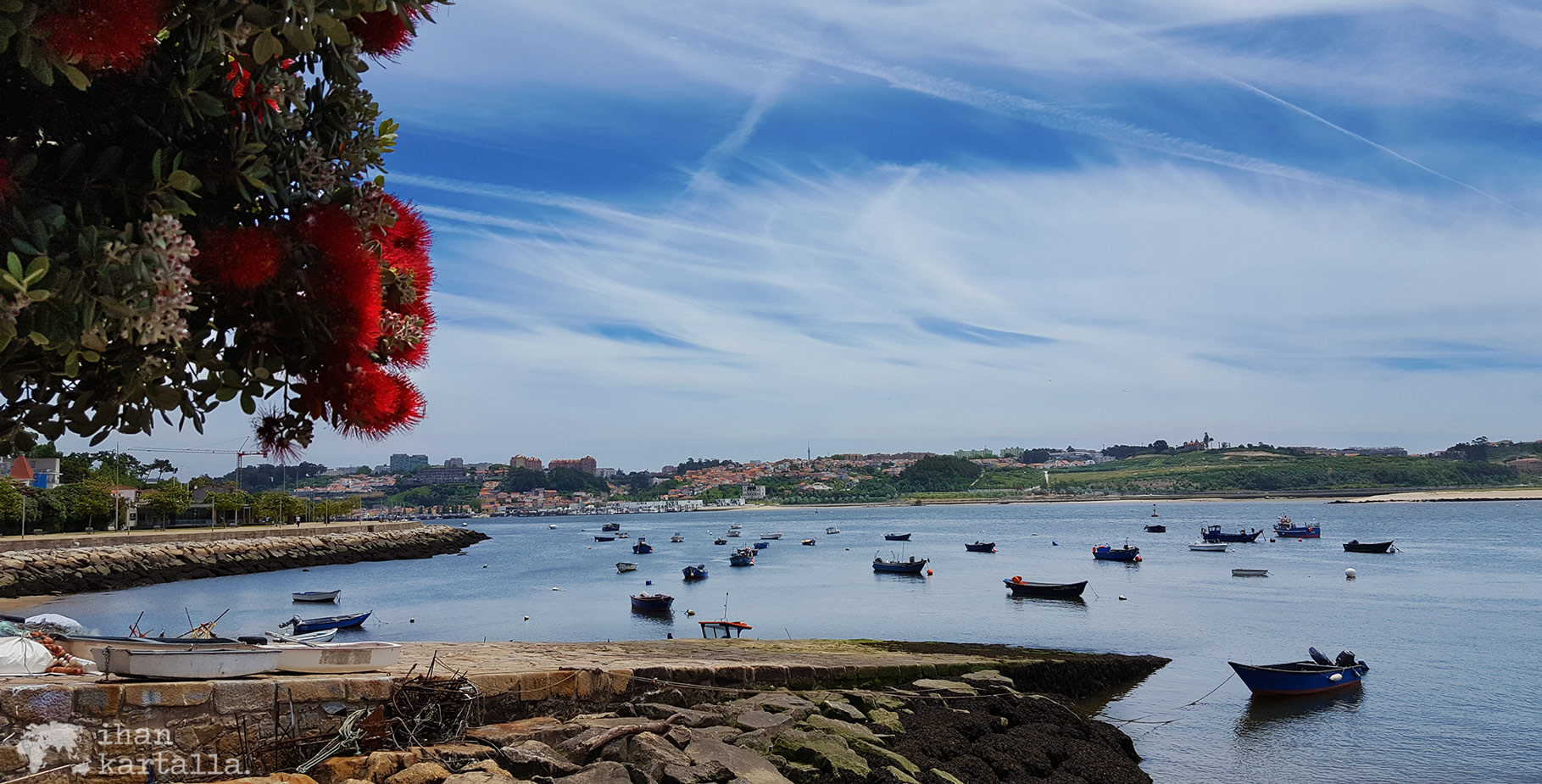 Festivaali järjestetään Parque da Cidade -puistossa, jonne emäntämme Manuelan mukaan kävelee parissa kymmenessä minuutissa, mutta kyllähän tuonne lähemmäs kolme varttia saa tarpoa. Sää ei ole mitenkään kesäinen, alkumatkasta putoaa harmaalta taivaalta jopa muutama sadepisara. Molhe-uimarannan kohdalla koukkaamme rannan tuntumaan, kävelläksemme tyylikkään pergolan lävitse.