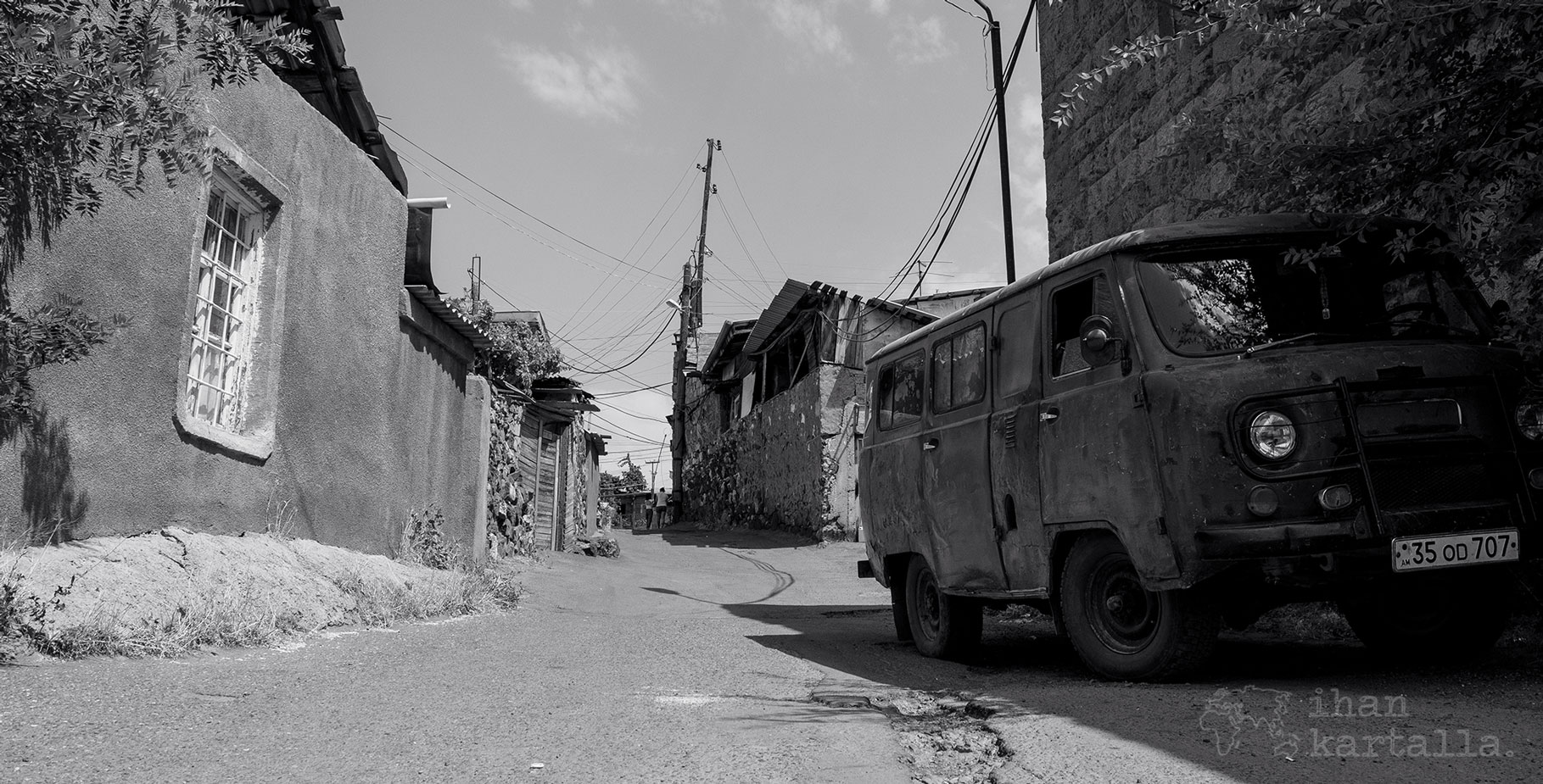 Paluumatkalla Jerevanin keskustaan piipahdan Kondin kaupunginosassa, jonne pääsee isolta kadulta jyrkkää mäkeä halkovaa polkua pitkin. Taidan tulla suoraan jonkun takapihalle, mutta kohta löydän mukulakivien peittämän kadunkin. Kond on Jerevanin ainoa uudisrakentamisbuumilta välttynyt osa ja suurin osa sen rakennuksista näyttää olevan hyvin pitkälti siinä tilassa, kuin ne ovat saattaneet olla satakin vuotta sitten.