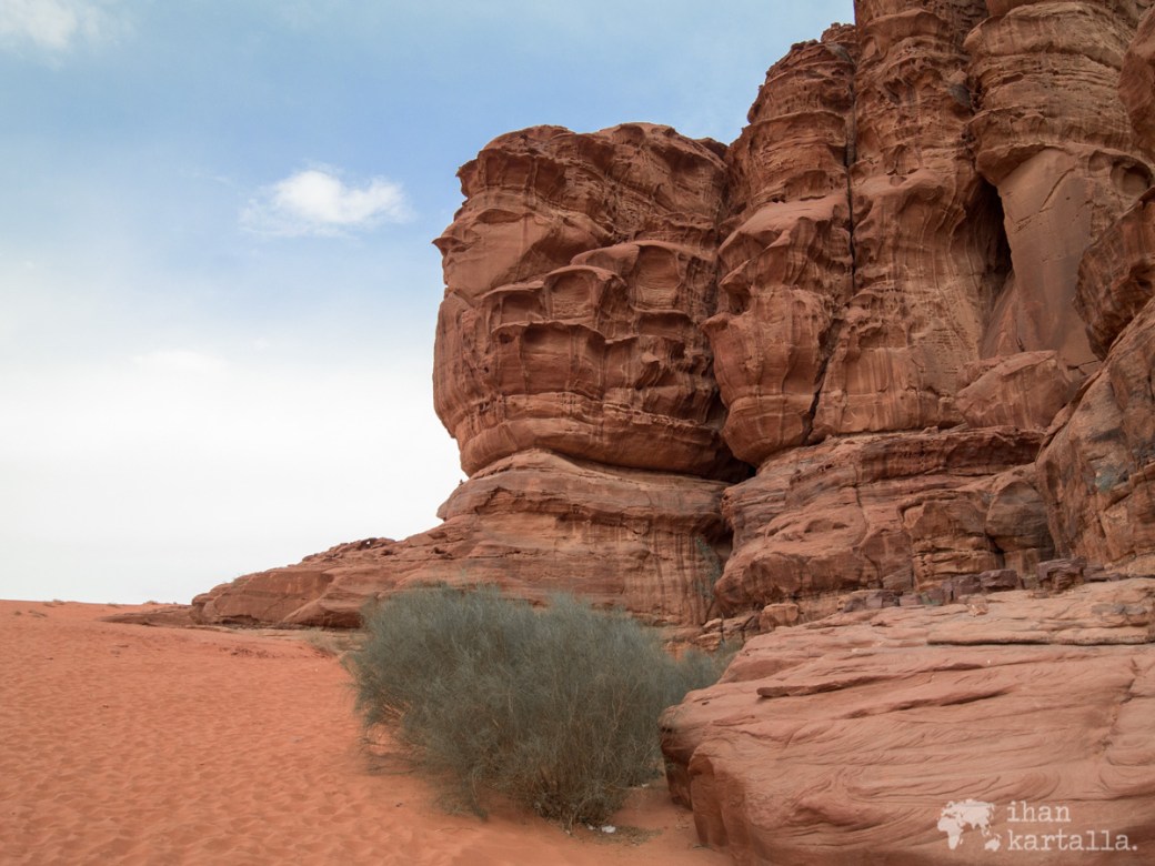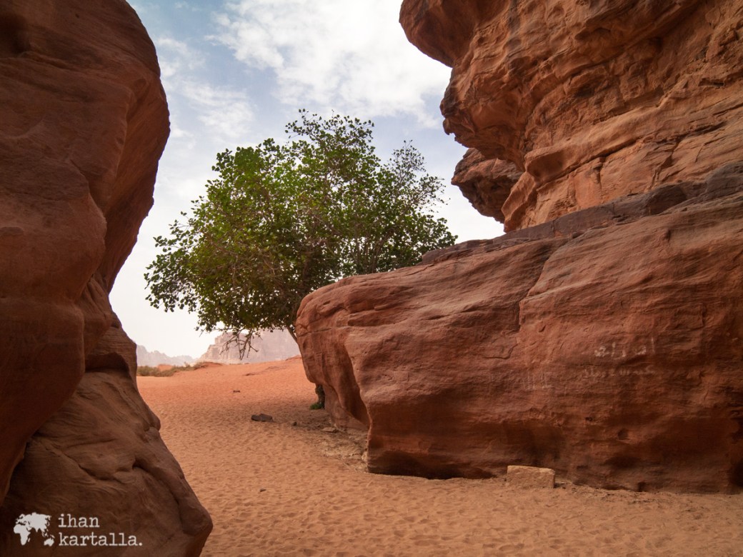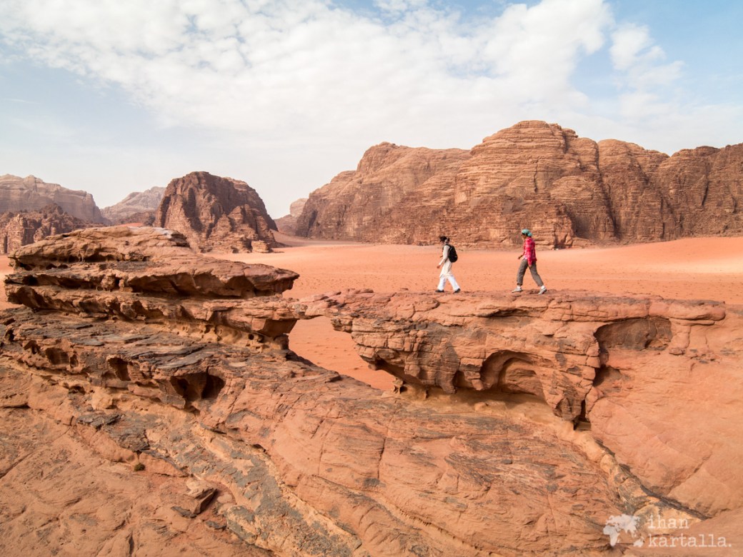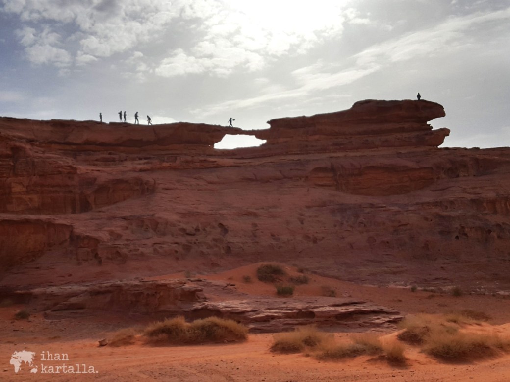 Wadi Rumin aavikolla on peräti kolme ns. kivisiltaa eli kallioon muodostunutta siltamaista kaarta ja alunperin minä olin toivonut kameliretkeä varatessani meidän pääsevän näkemään niistä suurimman ja kuuluisimman eli Burdah-kivisillan. Aikatauluja koskevan väärinkäsityksen vuoksi joudumme kuitenkin muuttamaan reittiä, jotta ehdimme illaksi ajoissa myös leiriin.