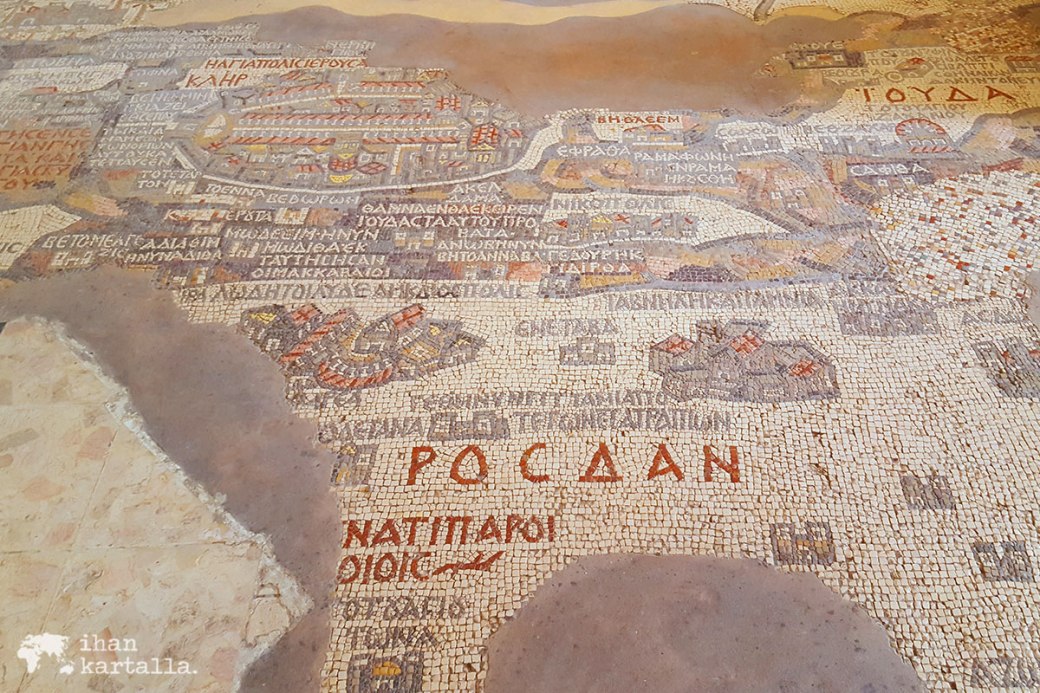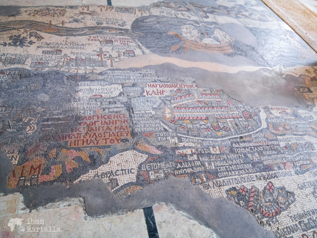 Madaban mosaiikkikartasta on säilynyt noin yksi kolmasosa ja alkuperäisen kartan on arvioitu koostuneen jopa kahdesta miljoonasta yksittäisestä mosaiikkikivestä. Palestiinan aluetta kuvaava kartta sisältää paljon tekstejä ja se on myös maailman vanhin karttaa esittävä lattiamosaiikki.