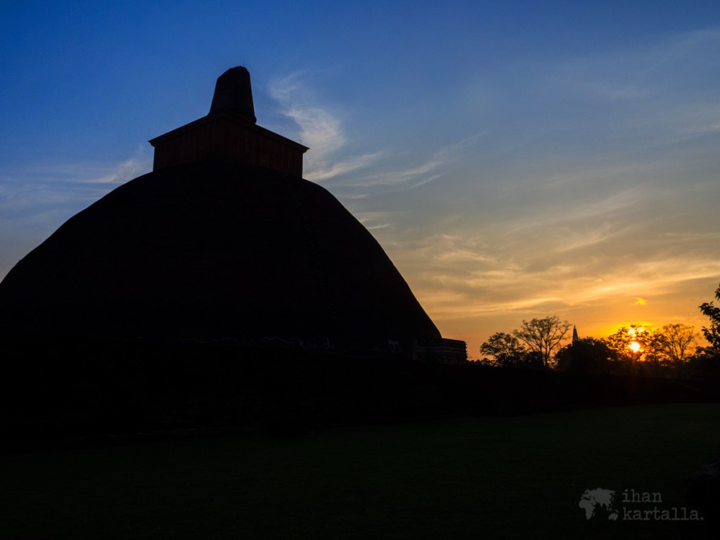 Ehdimme sopivasti vielä auringonlaskun aikaan nappaamaan muutaman kuvat Jetavanarama stupasta, joka kuljettajamme mukaan on maailman suurimpia tiilirakennuksia. Rakennusaikanaan tuo oli parin Egyptissä sijaitsevan pyramidin jälkeen maailman kolmanneksi suurin ihmisen rakentama monumentti, joten kerrassaan merkittävä stupa on kyseessä.