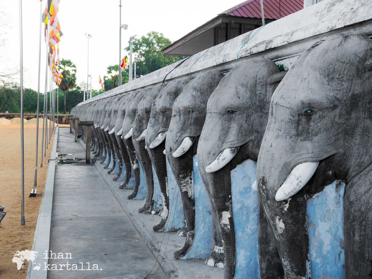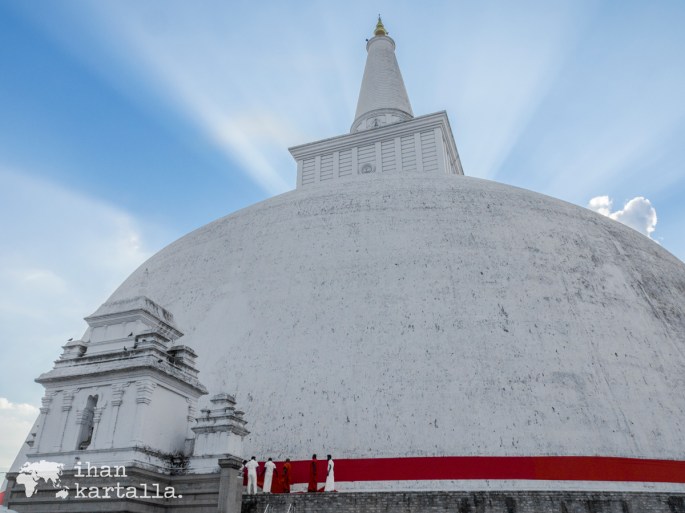Alueen vaikuttavin ilmestys on kuitenkin valtava valkoinen Ruwanwelisaya stupa. Stupa eli dagoba on siis tuollainen valtaisa kupolimainen rakennus, joka on käytännössä rakennettu Buddhan maallisten jäännösten päälle kasatun hautakummun ympärille.