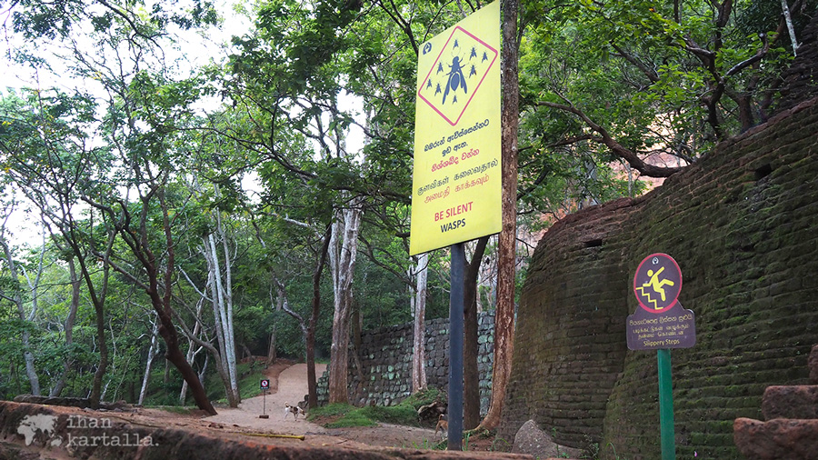 Alas kapuaminen onkin huomattavasti helpompaa ja takaisin maankamaralle päästyämme tutkailemme vielä itse Lion Rockia ympäröivää puutarhaa ja muinaisen palatsin raunioita. Apinoiden ja koirien lisäksi paikalla vilahtelee myös veikeitä maaoravia ja ampiaiset puolestaan pysyttelevät onneksi poissa.