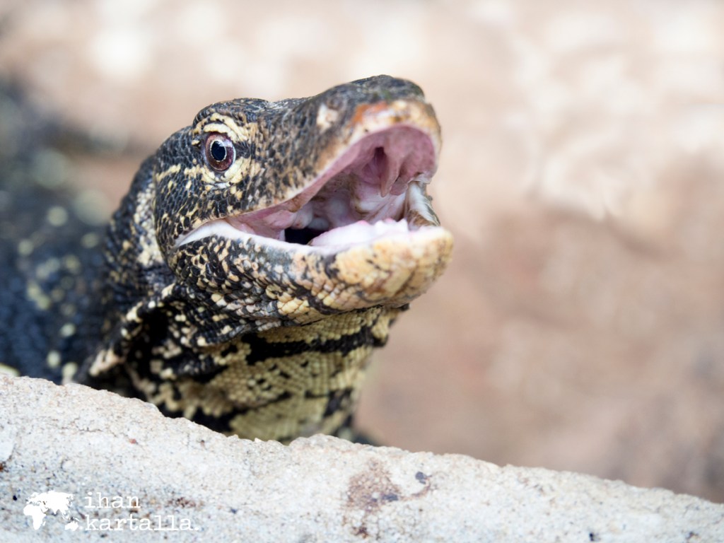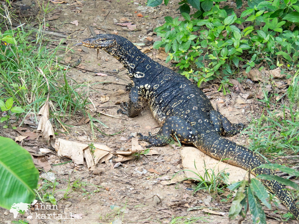 Hetken kuluttua Sumeera pysäyttää auton tien laitaan ja haluaa esitellä meille jotain. Paikalle ilmestyy pari paikallista miestä, jotka houkuttelevat läheisestä purosta esiin valtavan juovavaraanin kepin päähän kiinnitetyn lihapalan avulla. Luonnollisesti vastapalvelukseksi ojennan esiintyjille muutaman rupian ja toivon varaanin saavan osansa palkkiosta uuden aterian muodossa.