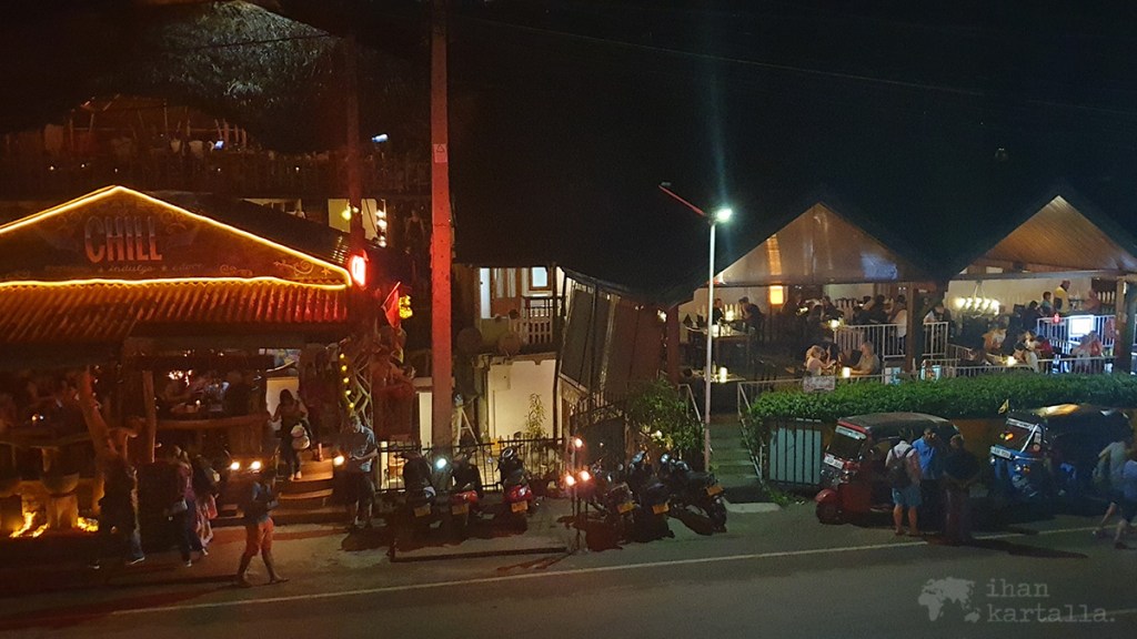 Perillä Ellassa käymme ensitöiksemme illastamassa Dream Cafessa, joka on kuljettajamme valinta. Paikka on sinänsä ihan kelvollinen, mutta ruoka jättää jonkin verran toivomisen varaa. Vertailemme Antin kanssa kumpi on kuivempi, minun tonnikala- vai hänen naudanlihapihvinsä. Toisaalta eipä ateria juomineen maksakaan kuin 8 €. Syötyämme otamme vielä yhdet juomat kadun toisella puolella sijaitsevassa baarissa ja lähdemme sitten pitkän päivän päätteeksi kirjautumaan sisään majapaikkaamme Ella Nature View -hotelliin.
