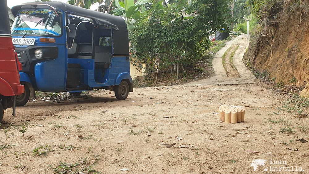 Paluumatkalla hörppäämme mangolassit ja pirtelöt laakson laidalla olevassa näköalaravintolassa ennen kuin palaamme hotellille pienelle luovalle päivätauolle. Ehdimme myös heittää reissun ensimmäiset Mölkky-erät, kun onnistumme vaivoin sopivan tasaisen alustan löytämään. Kirjautan lopulta Sri Lankan mestaruusturnauksen ensimmäisen osakilpailuvoiton nimiini.
