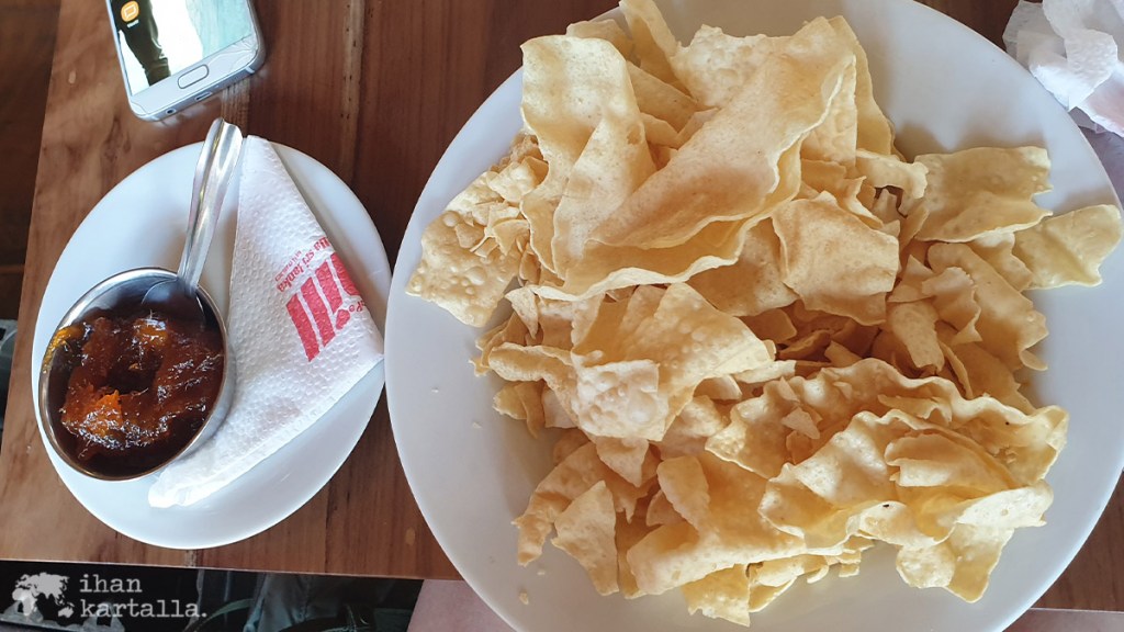 Luettuani parvekkeella tovin Rudyard Kiplingin Kim-romaania on taas aika kavuta uskollisen Toyota-minibussimme ilmastoituihin sisätiloihin. Haukkaamme pientä suolapalaa Chill-ravintolassa ennen kuin kuljettajamme ajaa meidät seuraavaan kohteeseen ja lähdemme kapuamaan Little Adam’s Peakille. Linssijauhoista valmistettu rapea papadum osoittautuukin varsin toimivaksi evääksi etenkin mangochutneyihin dipattuna.