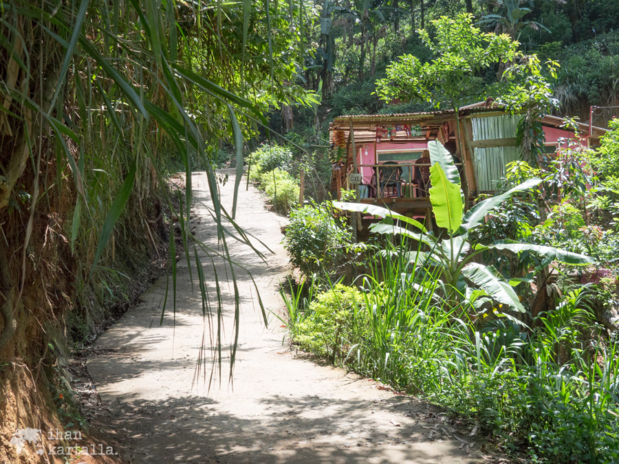 Itse asiassa Ellastakin löytyy toinenkin kuuluisa näköalapaikka eli Ella Rock, joka lukemani perusteella on jonkin verran vaikeammin saavutettavissa ja vaatisi noin parin tunnin patikoinnin polkuja pitkin. Little Adam’s Peakin juurelle sen sijaan pääsisi miltei perille asti autolla, mutta kuljettajamme jätettyä meidät sopivaan paikkaan, jatkamme loppumatkan jalan.