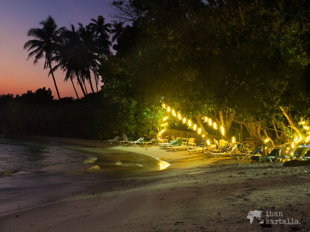 Aurinko sukeltaa valtavana hehkuvana pallona aaltoihin ja pimeyden laskeuduttua huristelemme tuk-tukeilla pitkin hämäriä kujia takaisin hotellille. Tähtitaivaan alla kelpaa käydä vielä kertaalleen altaassa kastautumassa.
