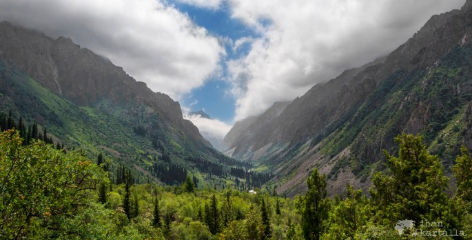 Puoliltapäivin lähdemme hotellin järjestämän kuljettajan kanssa kohti Tian Shanin -vuoristossa sijaitsevaa Ala Archan kansallispuistoa. Matkaa tuonne on Biškekistä vain vaivaiset 40 km, joten ei ole vaikea kuvitella miksi tuo on myös suosittu retkikohde paikallisten keskuudessa.