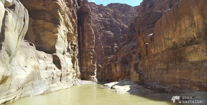 Aamiaisen suuntaamme vuokra-autollamme noin 30 km päässä sijaitsevaan Mujibin luonnonpuistoon, joka on osa Wadi Mujib -rotkolaaksoa.